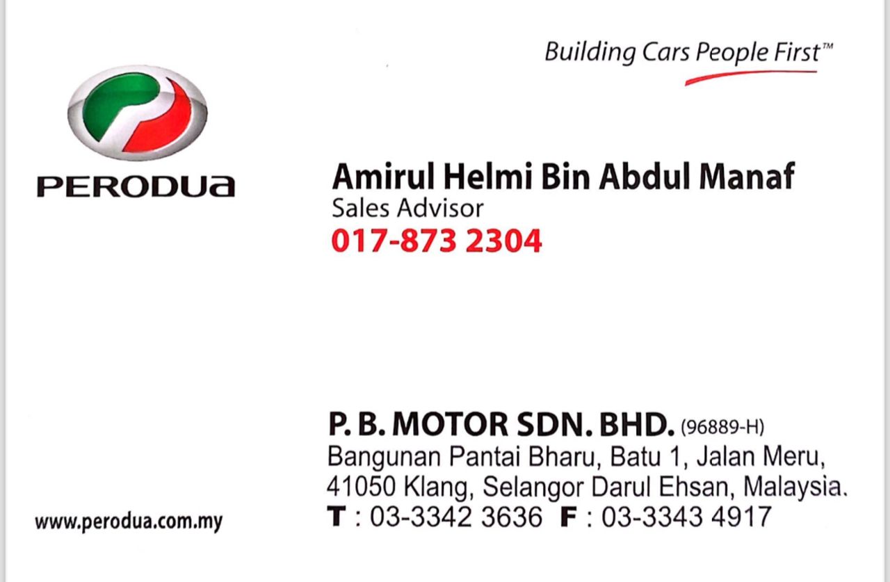 Hi! My name is Amirul, an authorized and experienced Sales Advisor at Perodua Klang with over 12 years of experience in car sales in Malaysia.